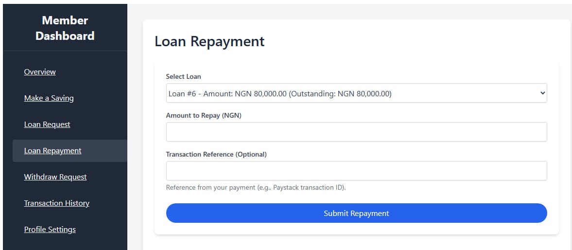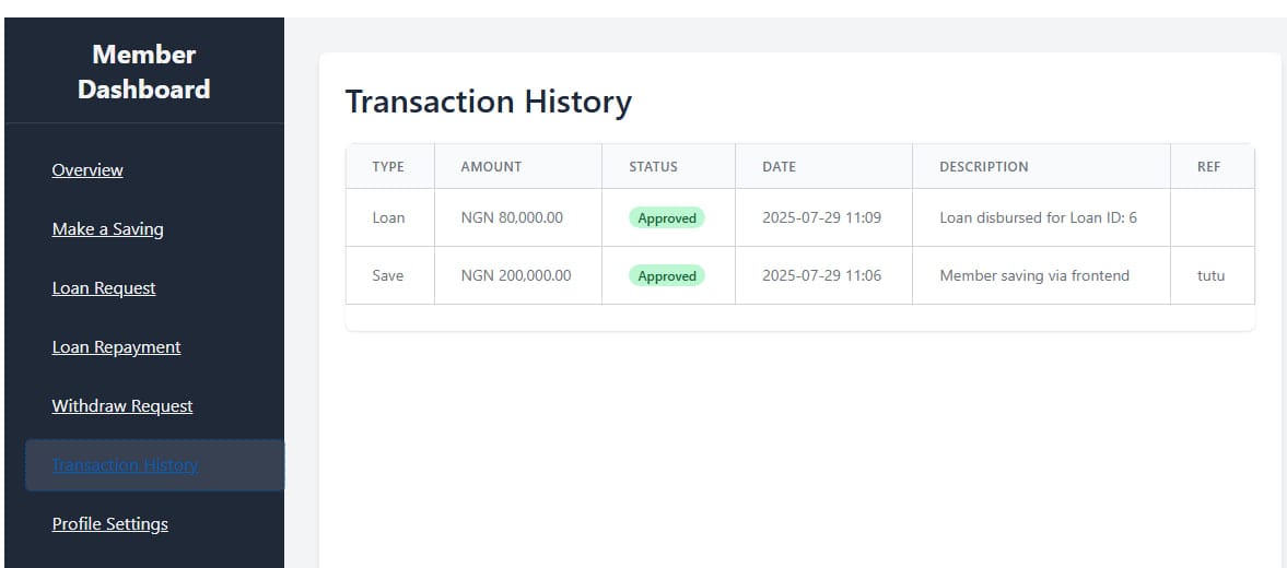 - Active Participation: Guarantors are no longer just names on a form. They receive real-time guarantee requests for loans and can actively approve or decline them directly from their member dashboard.